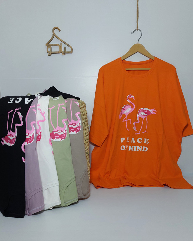 تیشرت سایزبزرگ زنانه طرح فلامینگو صورتی