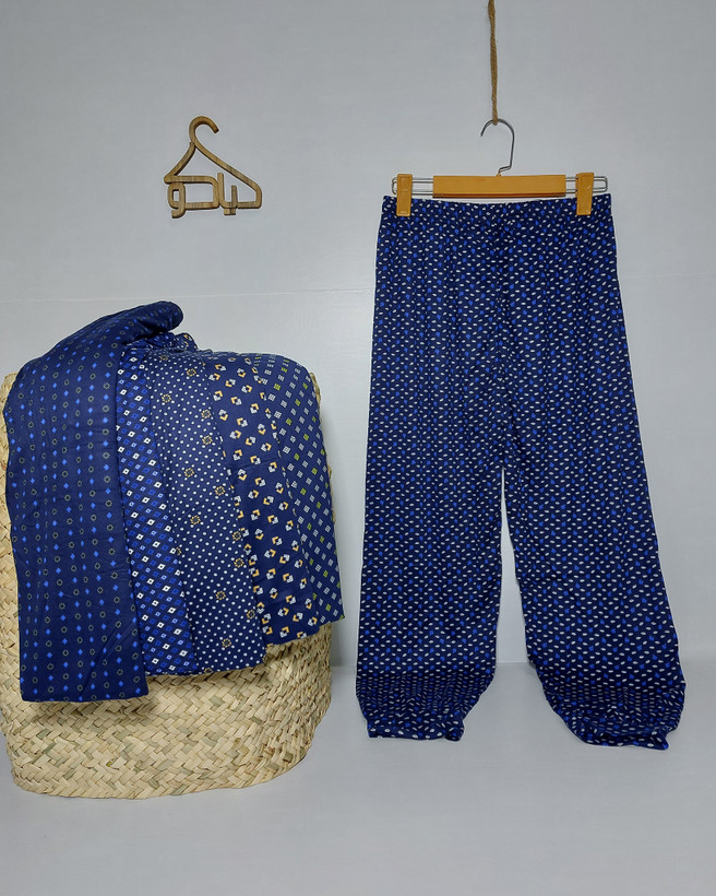 شلوار گیاهی زمینه سورمه ای زنانه