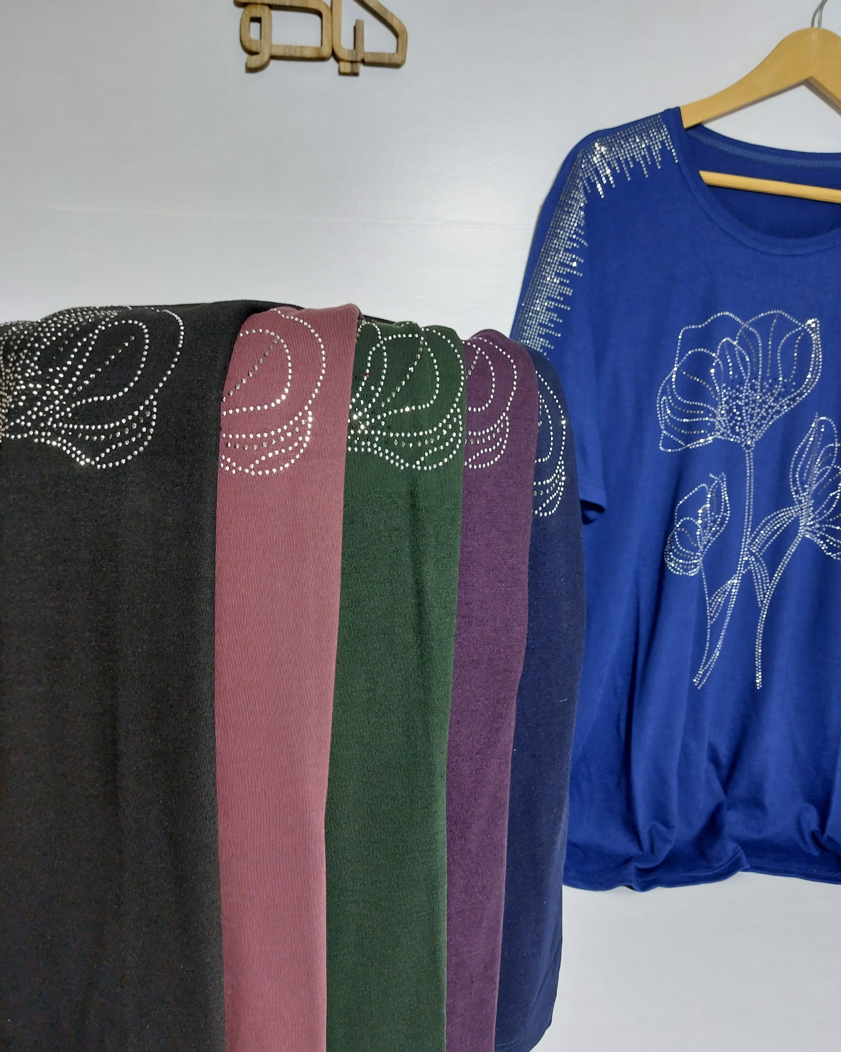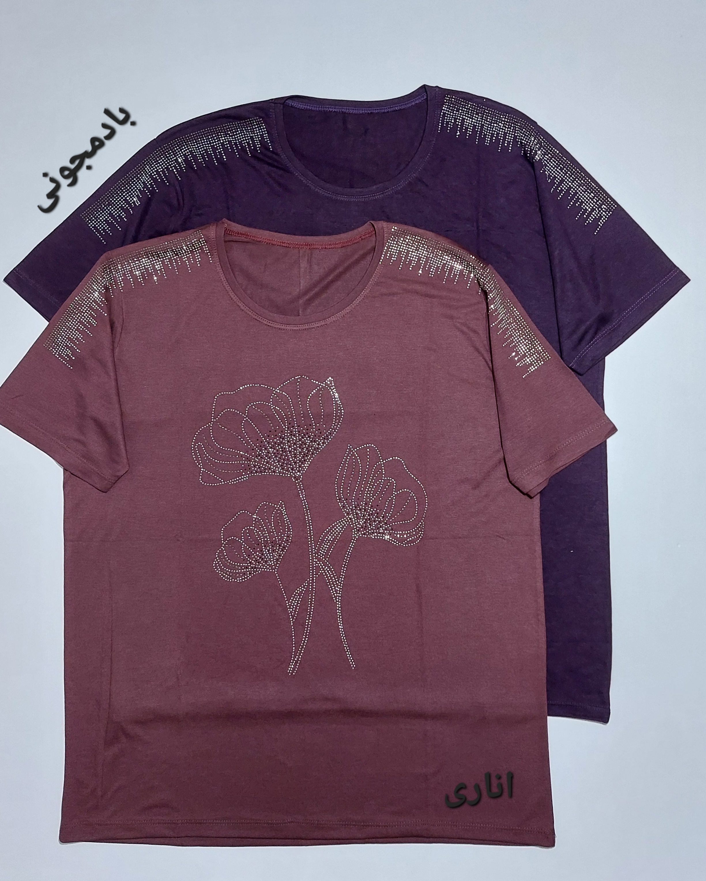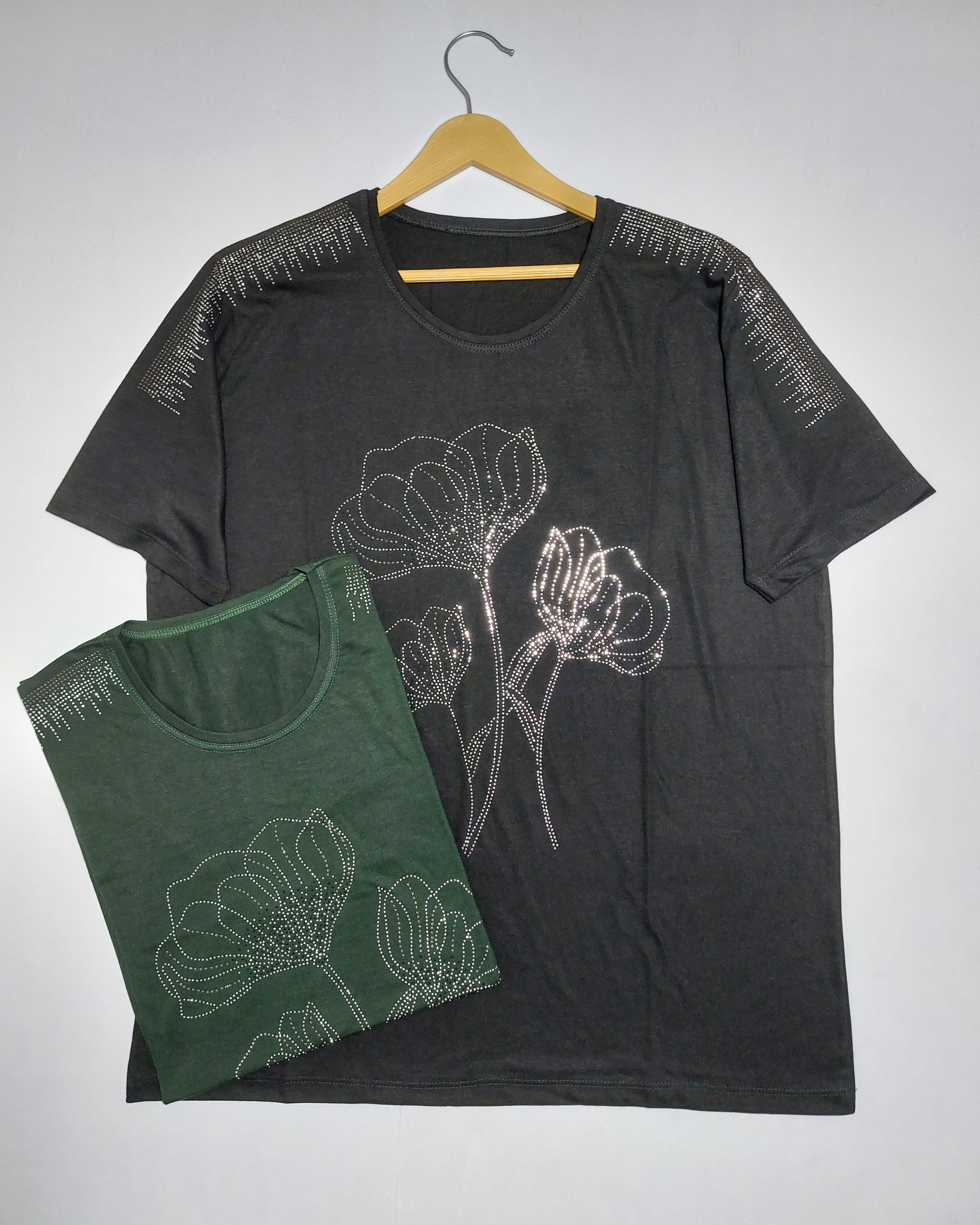 بلوزسرشانه نگینی طرح سه گل زنانه