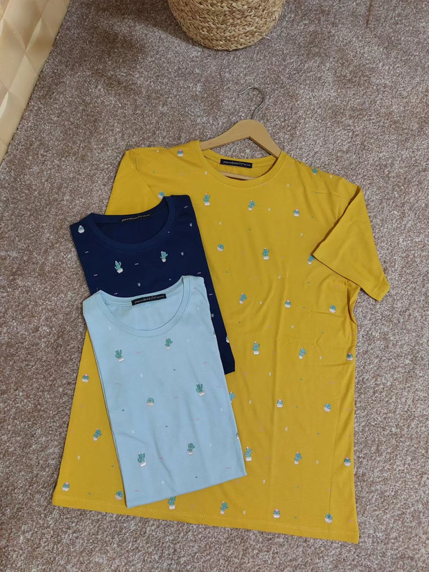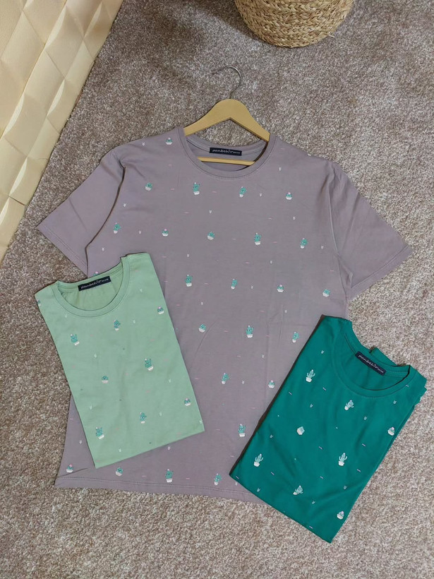 تیشرت نخ پنبه دخترونه طرح کاکتوس