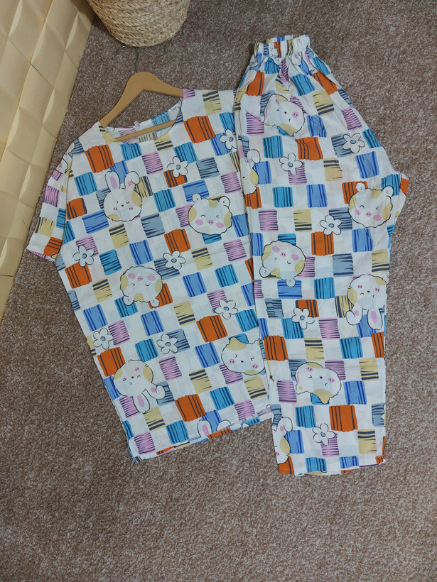 ست تیشرت و شلوار نخی سایز ۴ ایکس سایز بزرگ زنانه